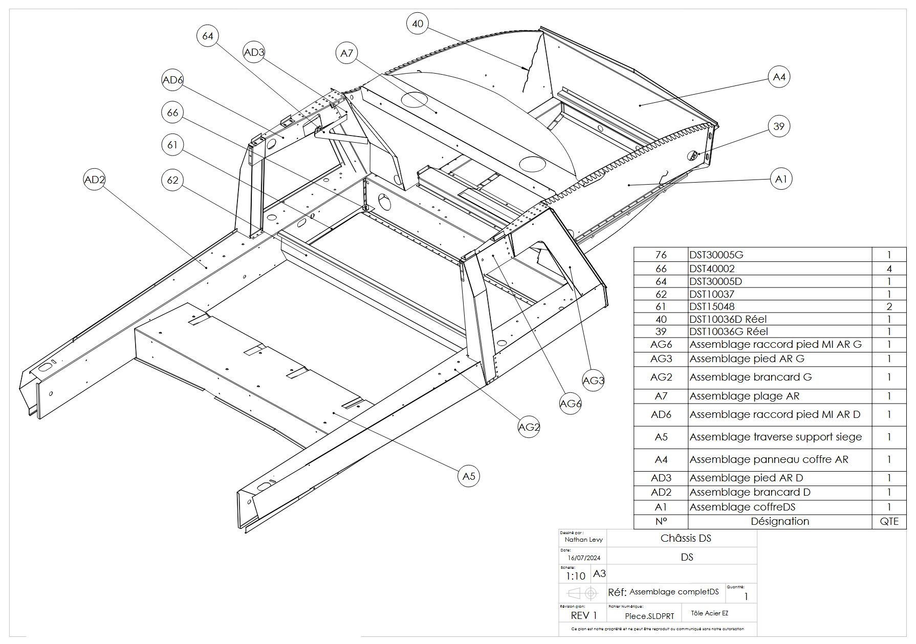 Conception complète du châssis DS Grand Palais, industrialisation, notice de montage et fabrication