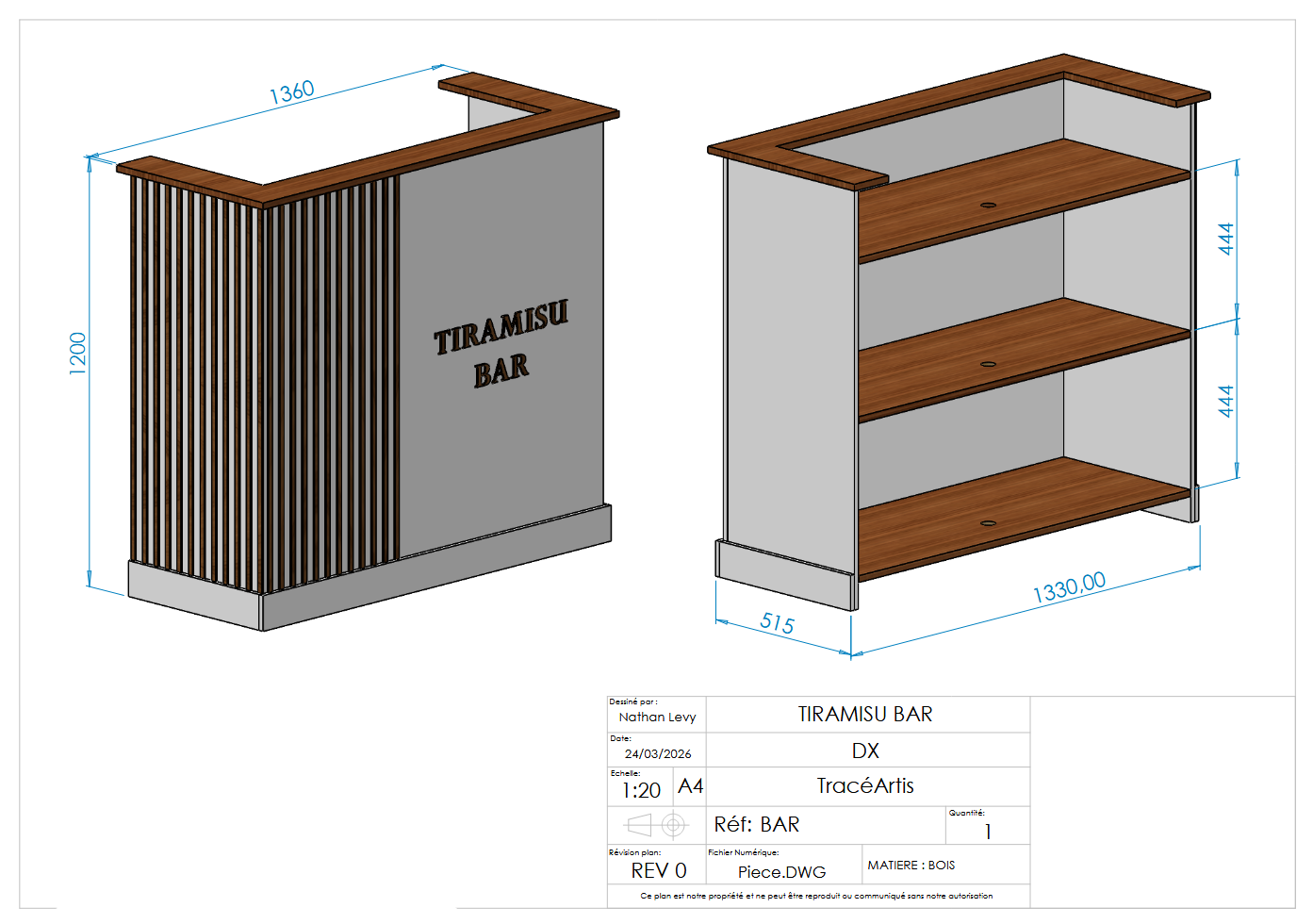 Visuel de présentation d'une proposition de bar dans le cadre d'un projet évènementiel, construction bois, découpe laser.